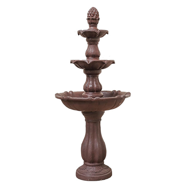3-Tier Water Fountain w/Pump & Pineapple Top, 51 Inch Tall, Brown, Large Outdoor Freestanding Waterfall Decor, Ideal for Garden, Porch, and Lawn